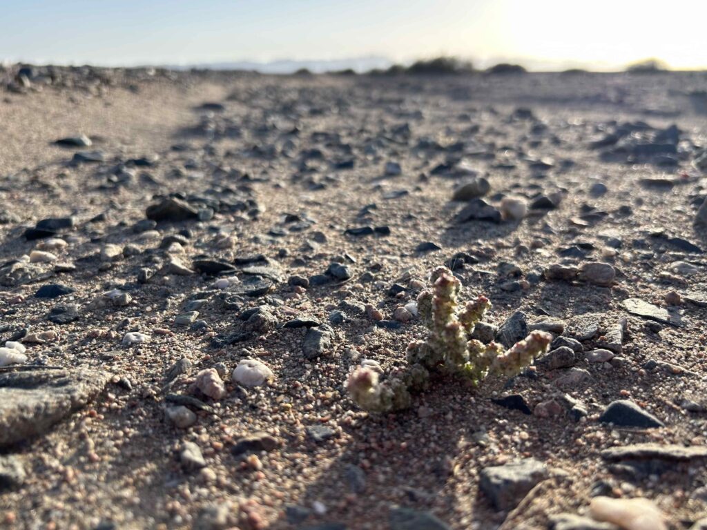 En fin d’après-midi, je déclare que je vais mieux. Je vais me promener longuement jusqu’aux antennes les plus proches, et les cailloux tracent leur ombre au sol, donnant au désert un nouveau relief. J’ai une révélation que j’ai urgemment besoin de partager avec O. Je l’interpelle à mon retour, alors qu’il maintient un escabeau pour Pf, en plein démontage de beacon.